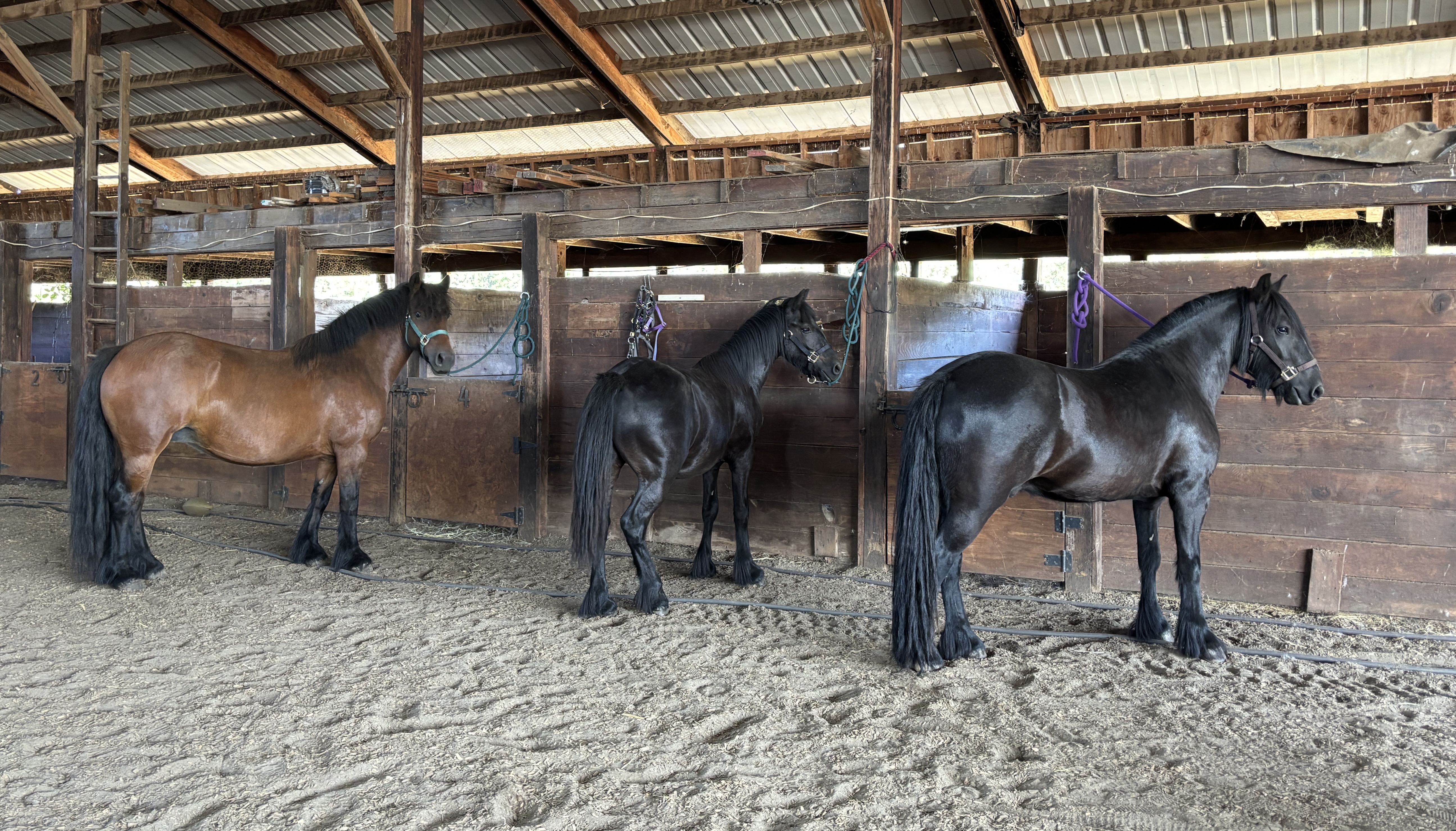 four foals coming in 2026 by 3 stallions: Fellacre Hubert II, Fiddlehead Shea Foy, Drycreek Inklines Kodak.