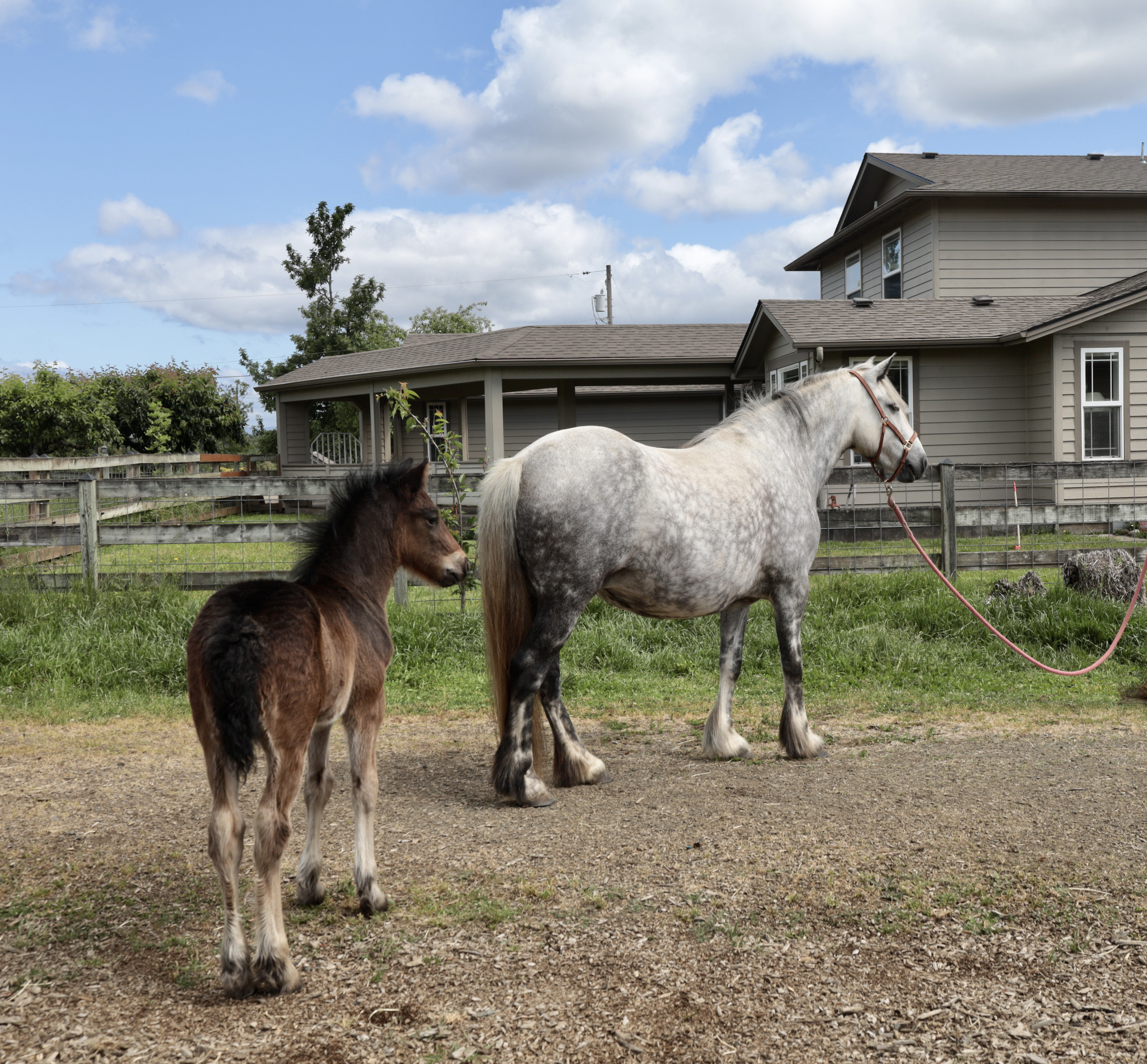 Serendipity w/ her 2024 colt, Fiddlehead Ayo A-ha.
