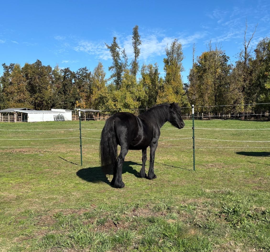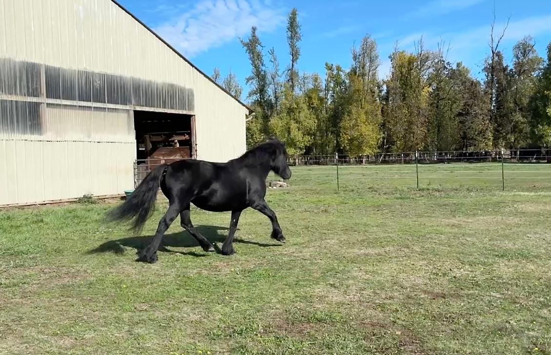 Arrived at Fiddlehead 2025 with her 2022 colt, Louie. I was so impressed with Trudy's temperament, her colt, and both having nice movement, I have put her on trial in Fiddlehead breeding. Her first foal is due 2026. Even though she is a little lighter in bone, her colt had very nice bone. She has been paired to Fellacre Hubert II who has ample bone. I'm really looking forward to seeing the results of this pairing.
