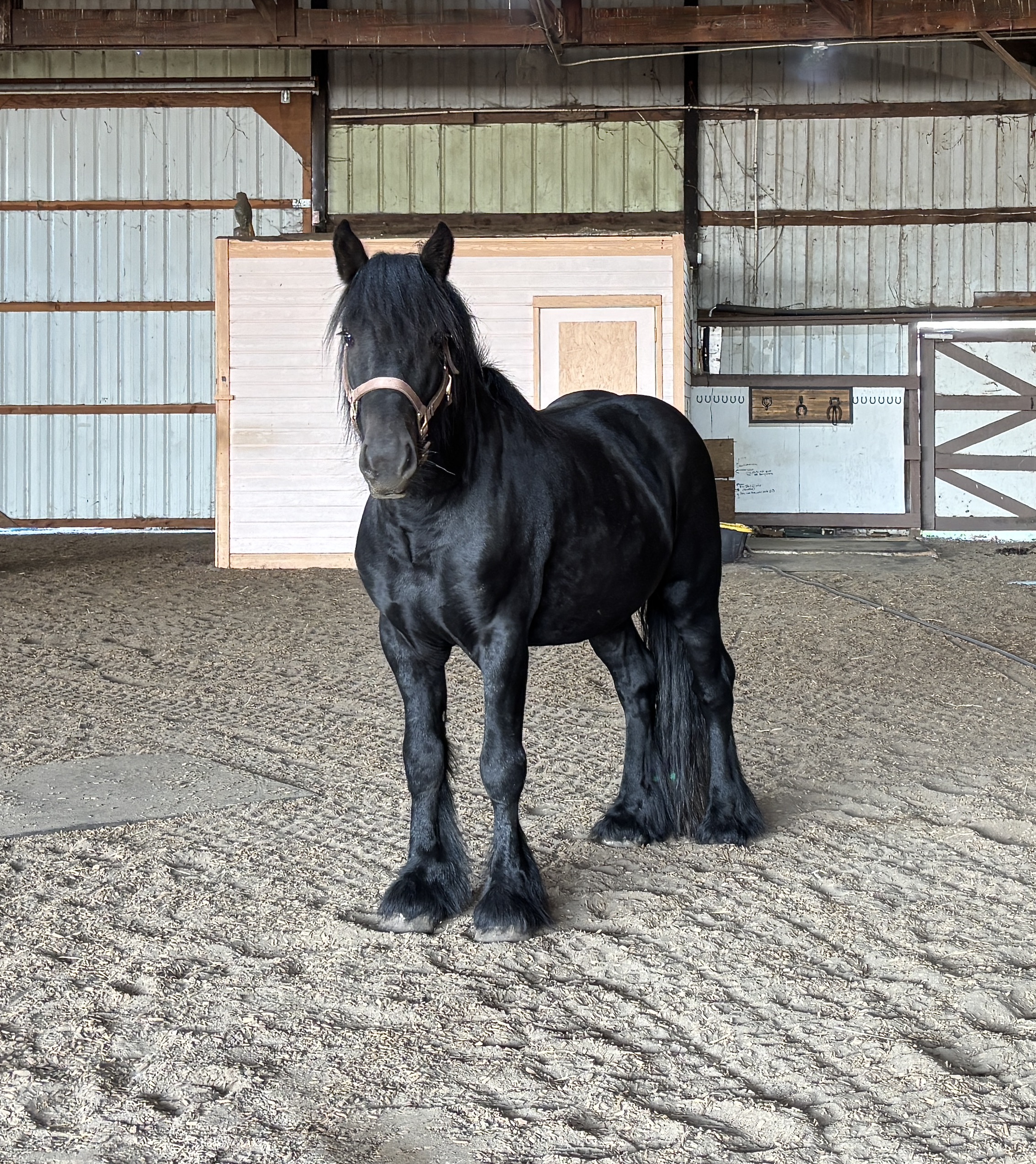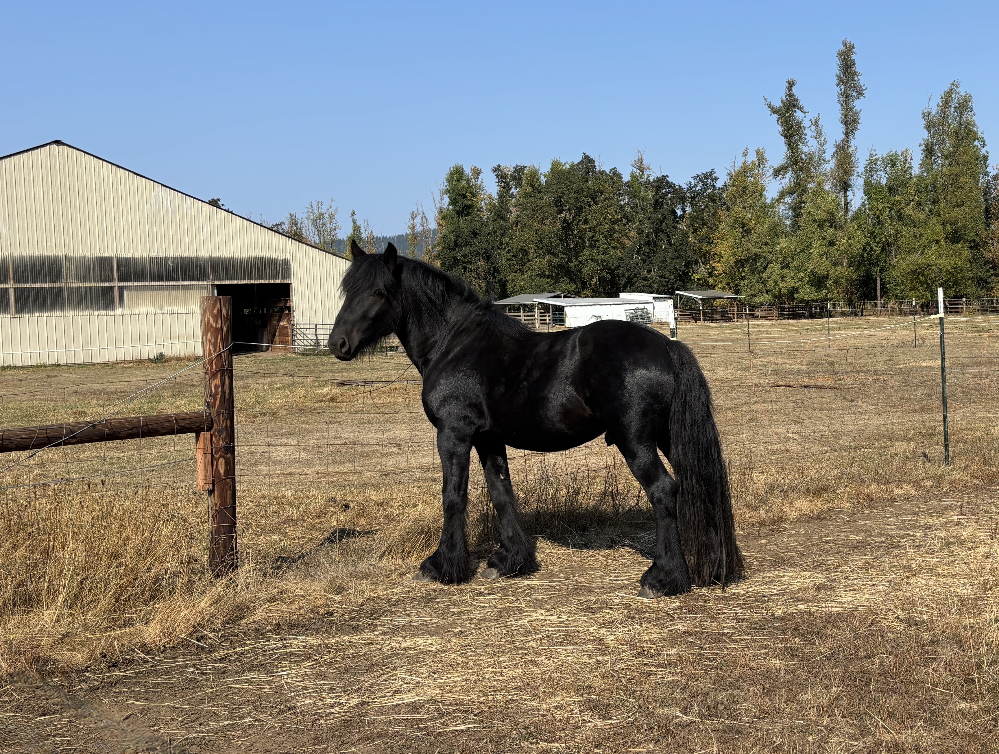 Hubert II arrived at Fiddlehead Summer 2023. The effort and expense to bring Hubert II into North America is based on our passion to bring heterogeneity to North American bloodlines and to further strengthen existing quality. Still developing, Hubert already shows big impressive movement and structure. He is full of curiosity and kindness. We are looking forward to seeing Hubert's first foal arriving in 2025 and more to come in 2026.