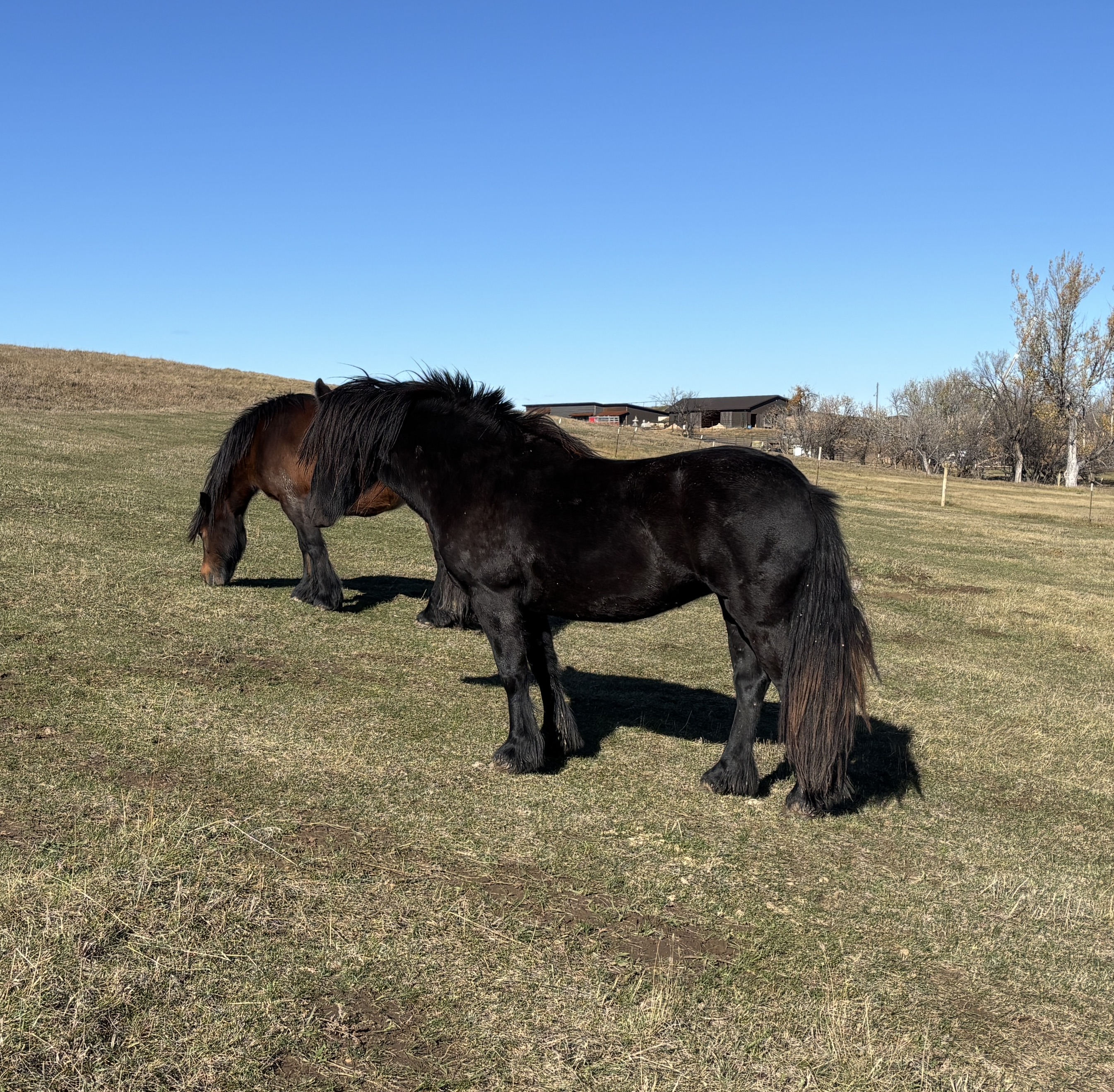 We are so grateful to Tom Lloyd of Hades Hill to allow us to bring this lovely young mare into our program. In addition to bringing outstanding type to the U.S., her bloodlines will greatly help genetic diversity. Her UK sire, Hades Hill Geronimo is an accomplished driving stallion and her dam line holds 7 consecutive generations of Hades Hill mares. Thanks to Dakotafell, Princess has been growing with Fiddlehead Lumen in their South Dakota herd. If all goes well, Princess will be bred to Dakotafell Legacy with hopes to produce a 2027 foal for Dakotafell.