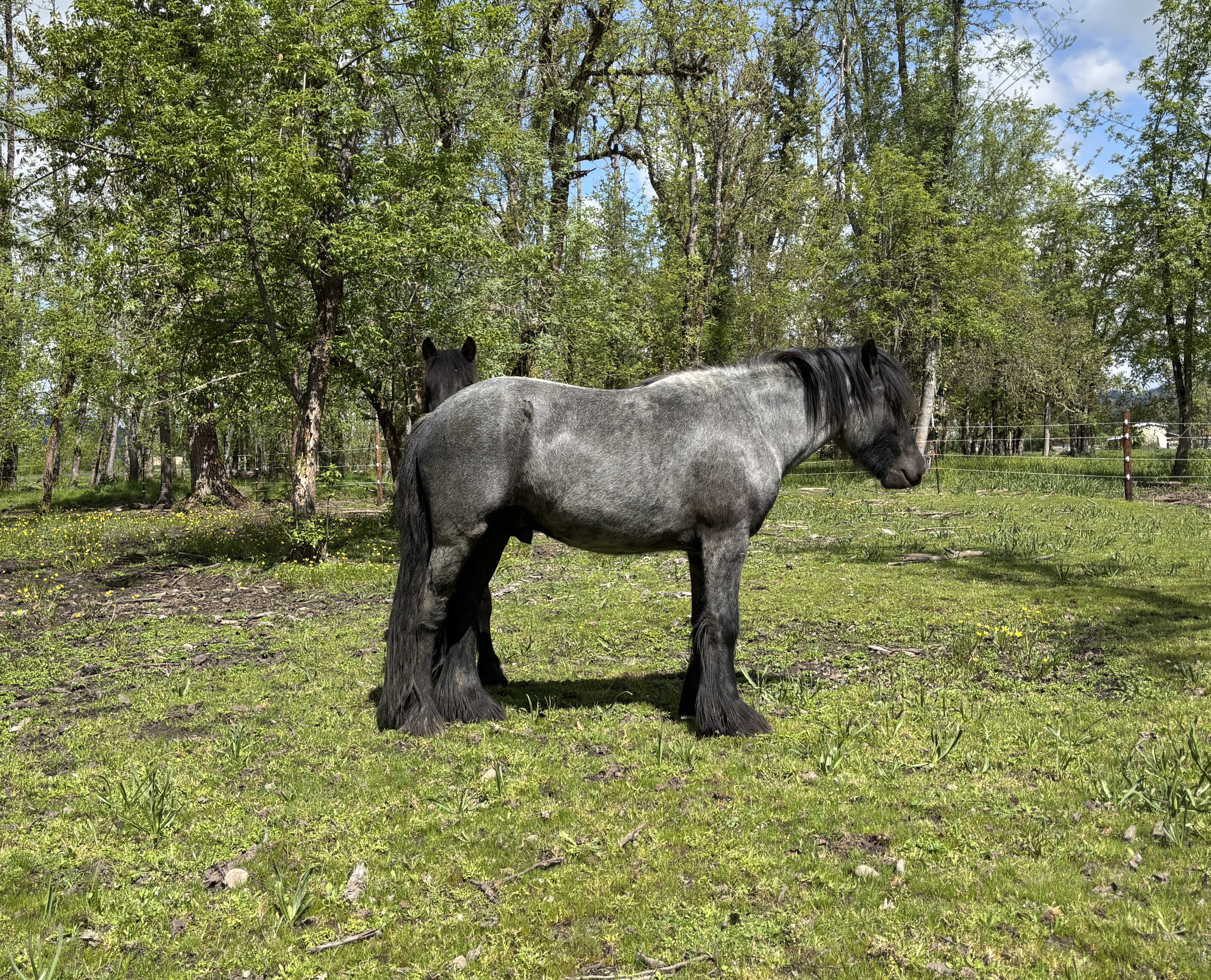 Early 2025, Tobias has 2 beautiful North American foals on the ground with one more on the way. Tobias semen is available frozen, analyzed and meets the standards of Select Breeders Services. Tobias's pedigree (see below) shows multiple UK foundation stock that is not yet represented here in North America. This means Tobias progeny will lend well in providing genetic diversity to the very small gene pool that exists in the USA.