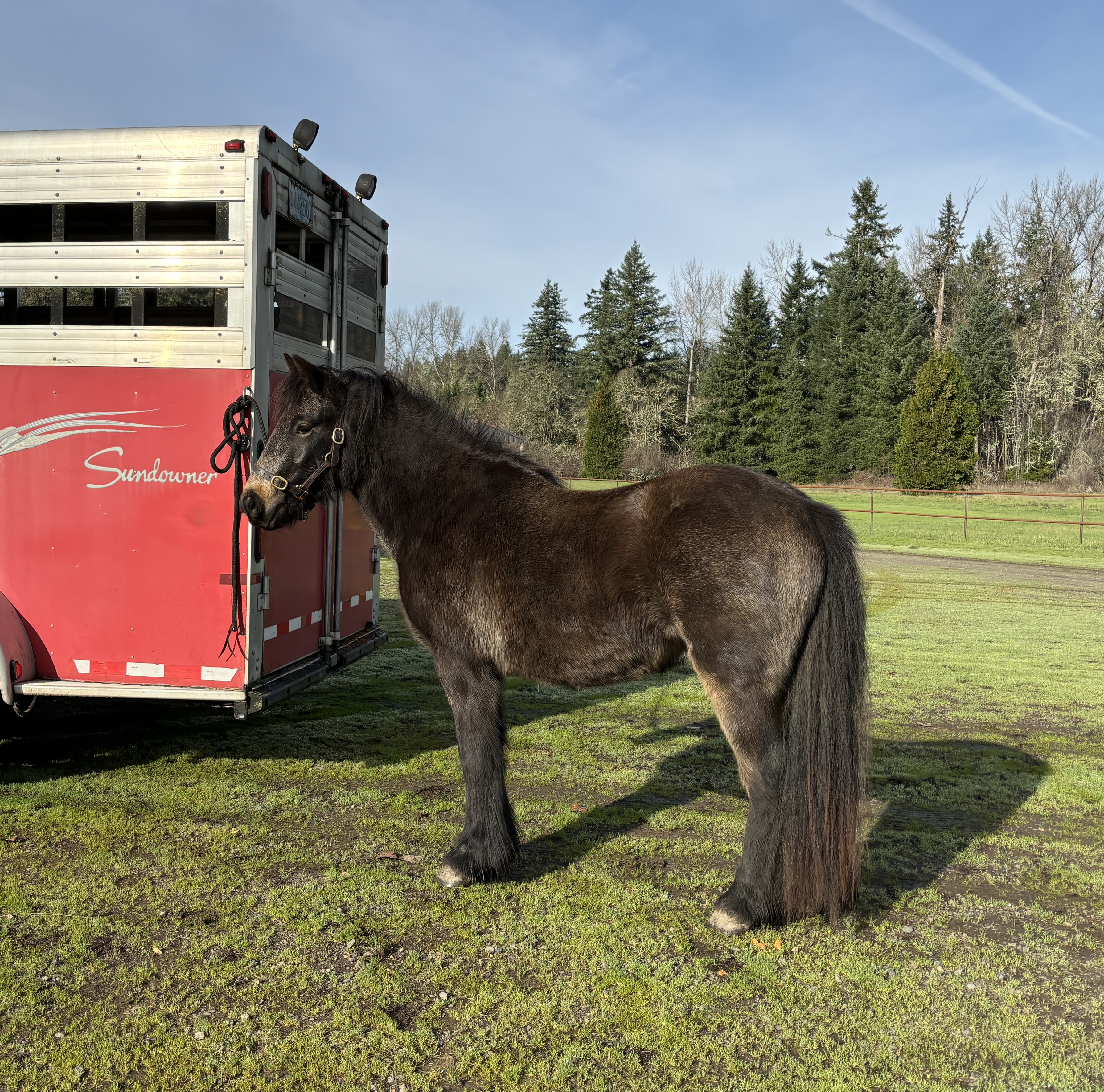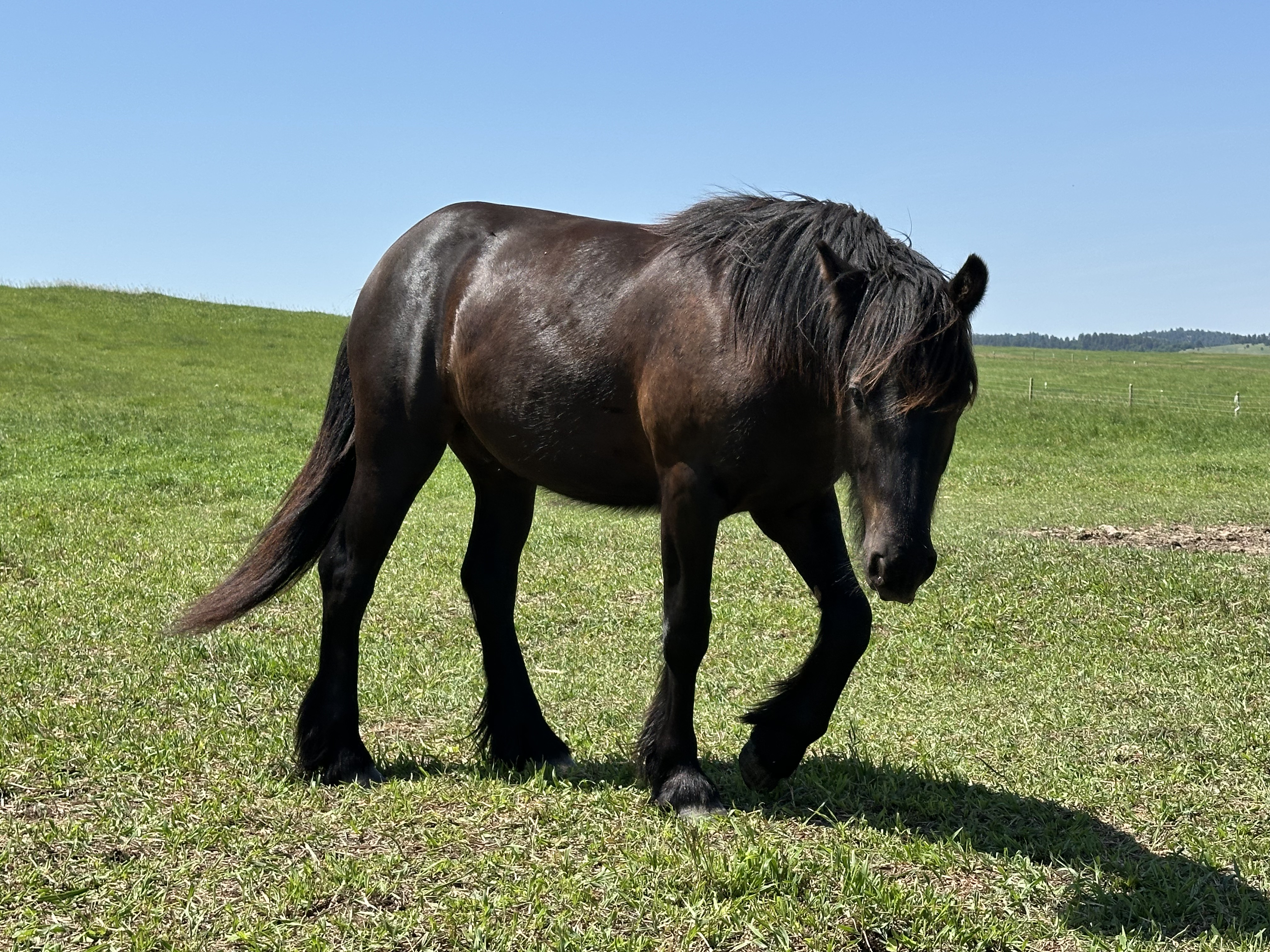 Charles was bred and raised with us at Fiddlehead Pony Farm. He is out of Braeberry Clarabel who is at the top of our list for temperament and type. Charles is quiet and incredibly thoughtful, a delight to be around and work with. He has substantial bone, nice frame, and tons of silky straight feather/hair. Like his dam, he has a kind doe eye. Charles is tested non-agouti and is homozygous black via parentage. Also tested FIS clear. His pedigree boasts quality, has a nice balance with bloodline diversity that will appeal to many breeders. Charles has many solid citizen relatives who have done well in performance, competitive extreme trail, working equitation, lessons, driving, expos/demos, and bridle less/liberty. His sire is young, already participating in expos including Equine Affair and stallion presentations.