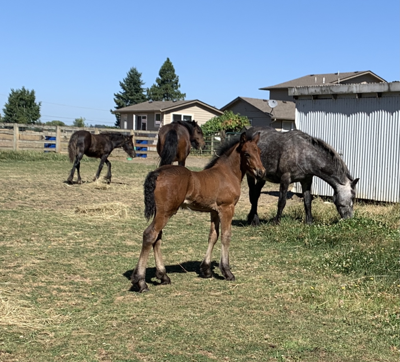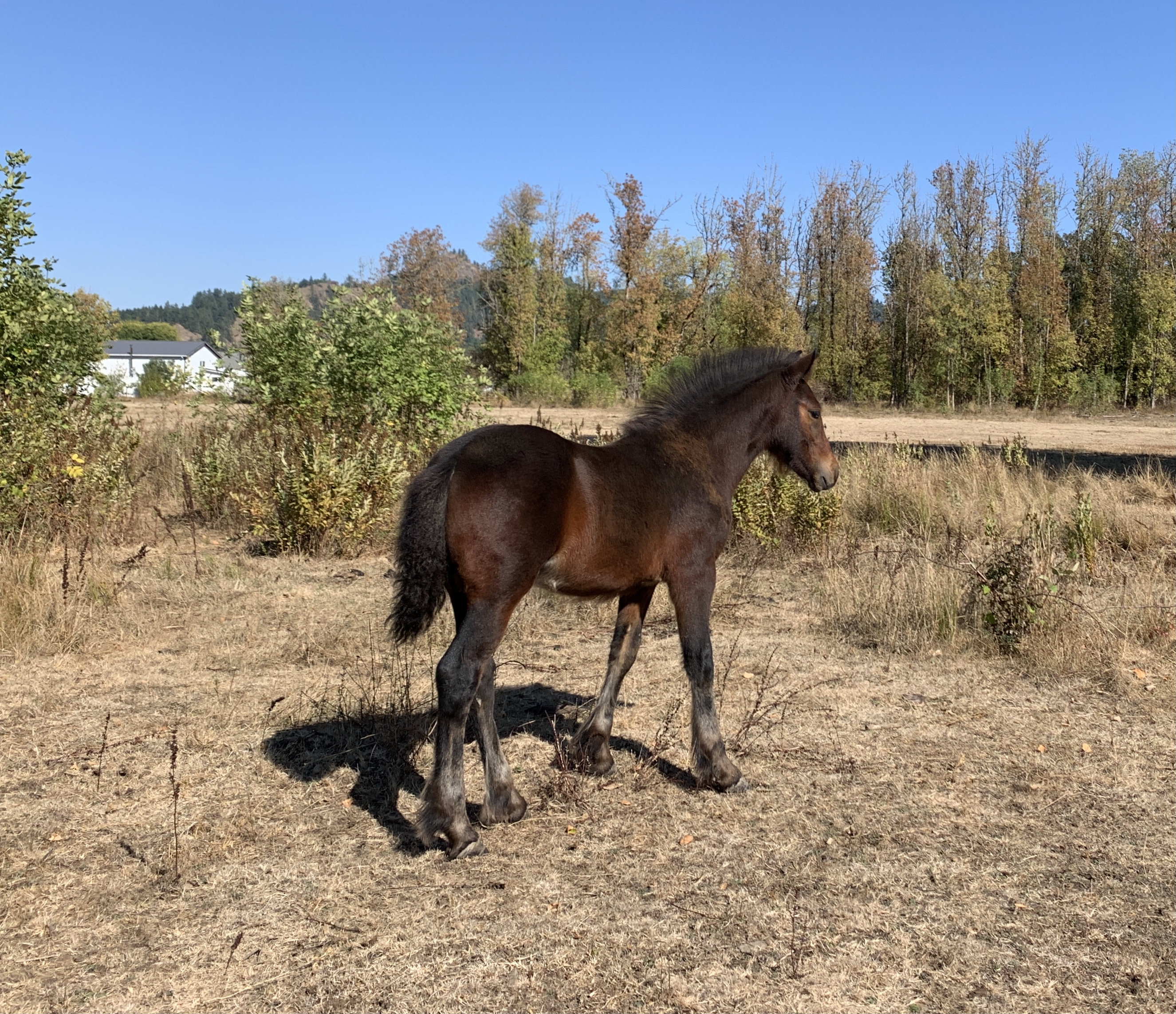 From day 1, little Catalina shines precious and shows calm confidence. Her pedigree reflects solid, proven, champion lines with high influence from Lunesdale and Murthwaite. Most notable are her maternal grand-sire, Lunesdale Black Ice II who took FPS Champion Stallion (2016) and Supreme Rare Breed of the Year (2018). Her paternal grand-dam, Lunesdale Rock Rose has won high point performance championships. Catalina is living and growing on our 45 acre farm in Oregon. She will be available at weaning (mid-September). We raise our foals socially in herd groups, handle them often and teach them all the basics prior to leaving for their new homes. She should mature 13.2-13.3hh. Catalina will be micro-chipped and registered with the Fell Pony Society, official Fell Pony registry. Contact me for info. on this lovely breed as well as more info. about Catalina.