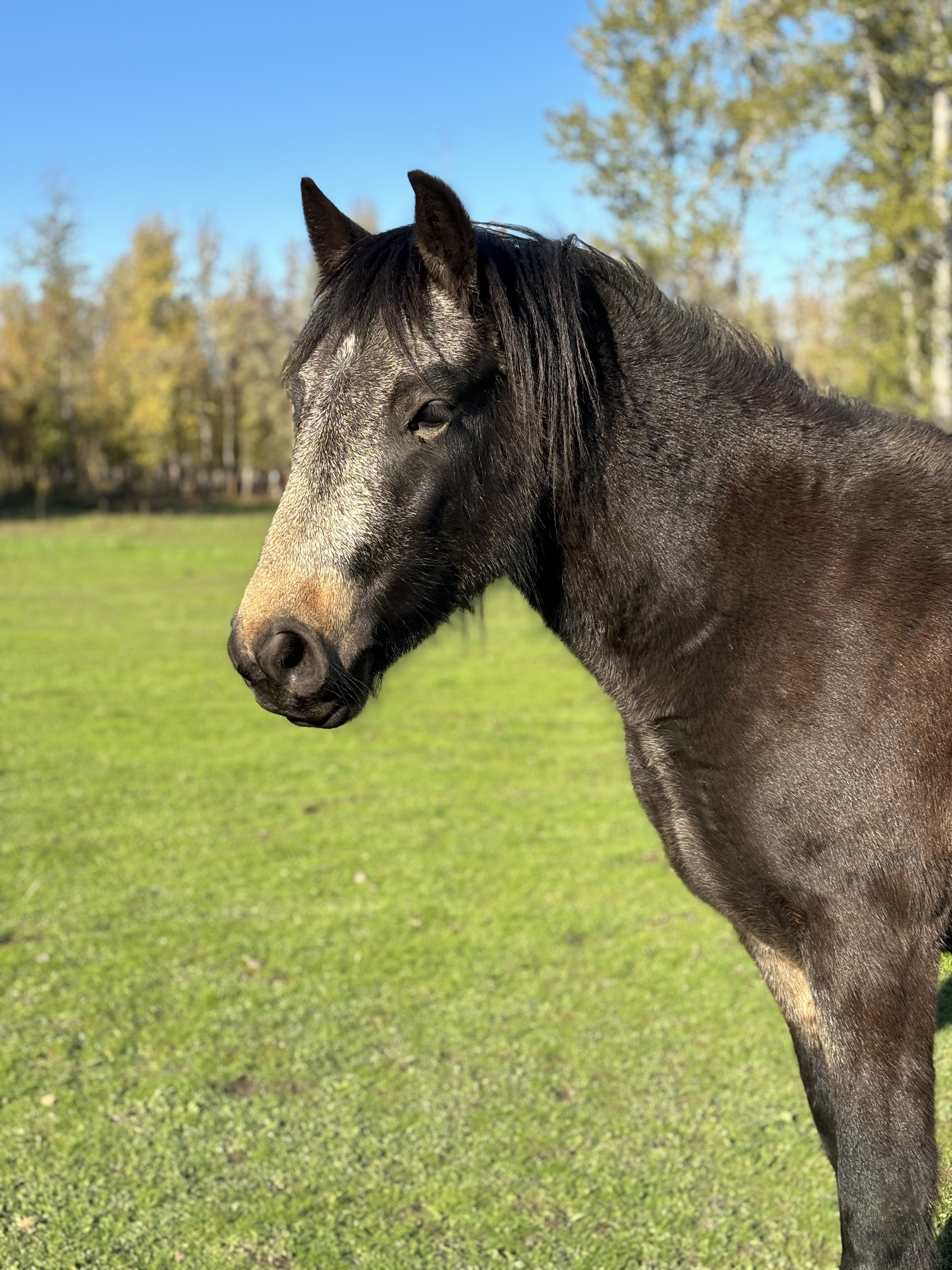 Saint has one of the prettiest heads I have seen. Her dam is a lovely tempered forward moving mare. Her sire is imported from the very well known Roandale stud in the UK. She is expected to mature around 14hh and should develop good substance.