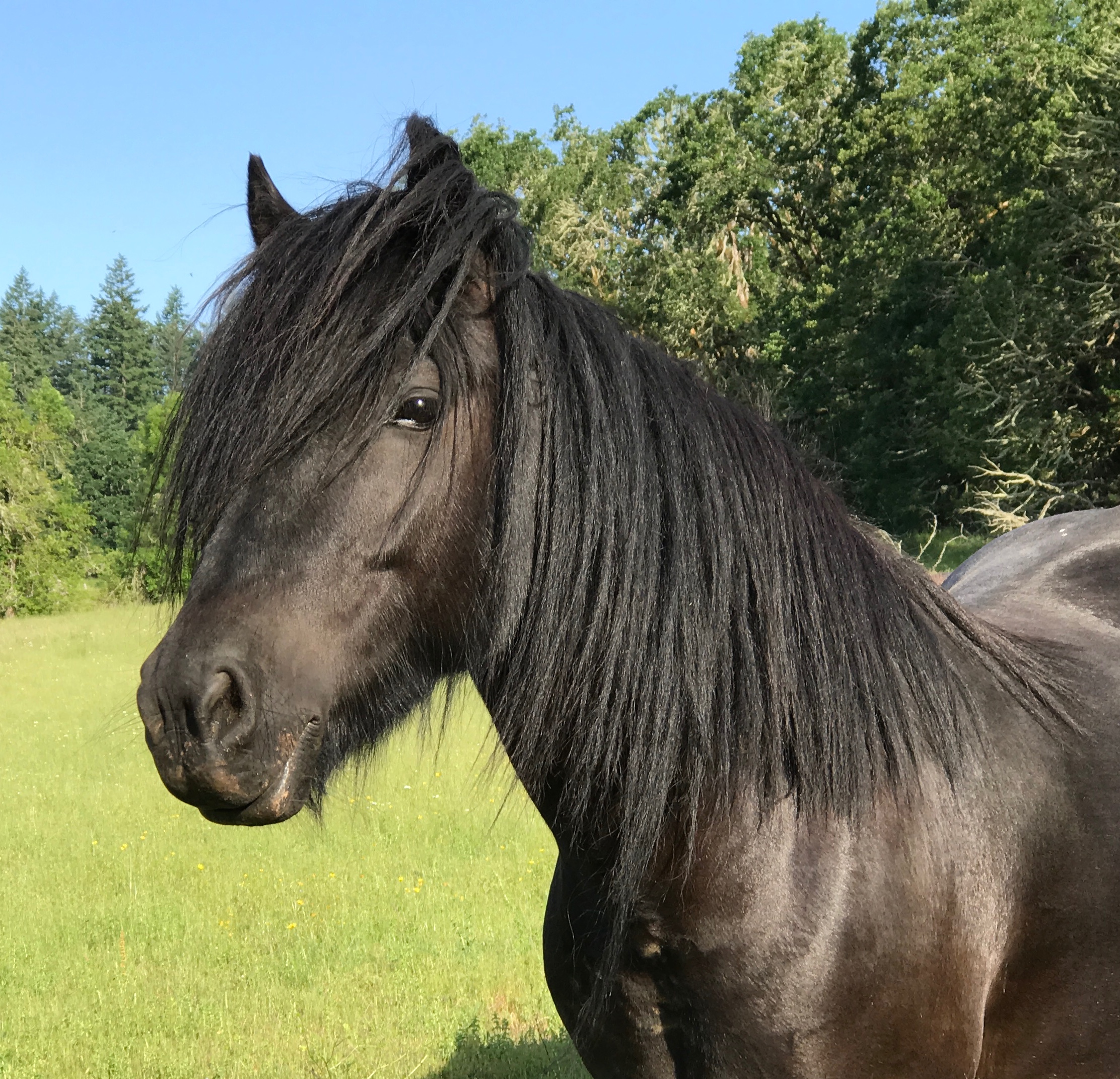 Crystal produced the first purebred Fell foal for FiddleHead, FiddleHead Brooke. Before she came to us, she had 2 fillies by ApplebyFair Maximus. We hope to train Crystal to saddle coming Fall 2018 as we think she will be a nice riding mare. We have done groundwork with her and ponied her on the trails and she seems to have that very appealing positive attitude that so many Fell ponies have.