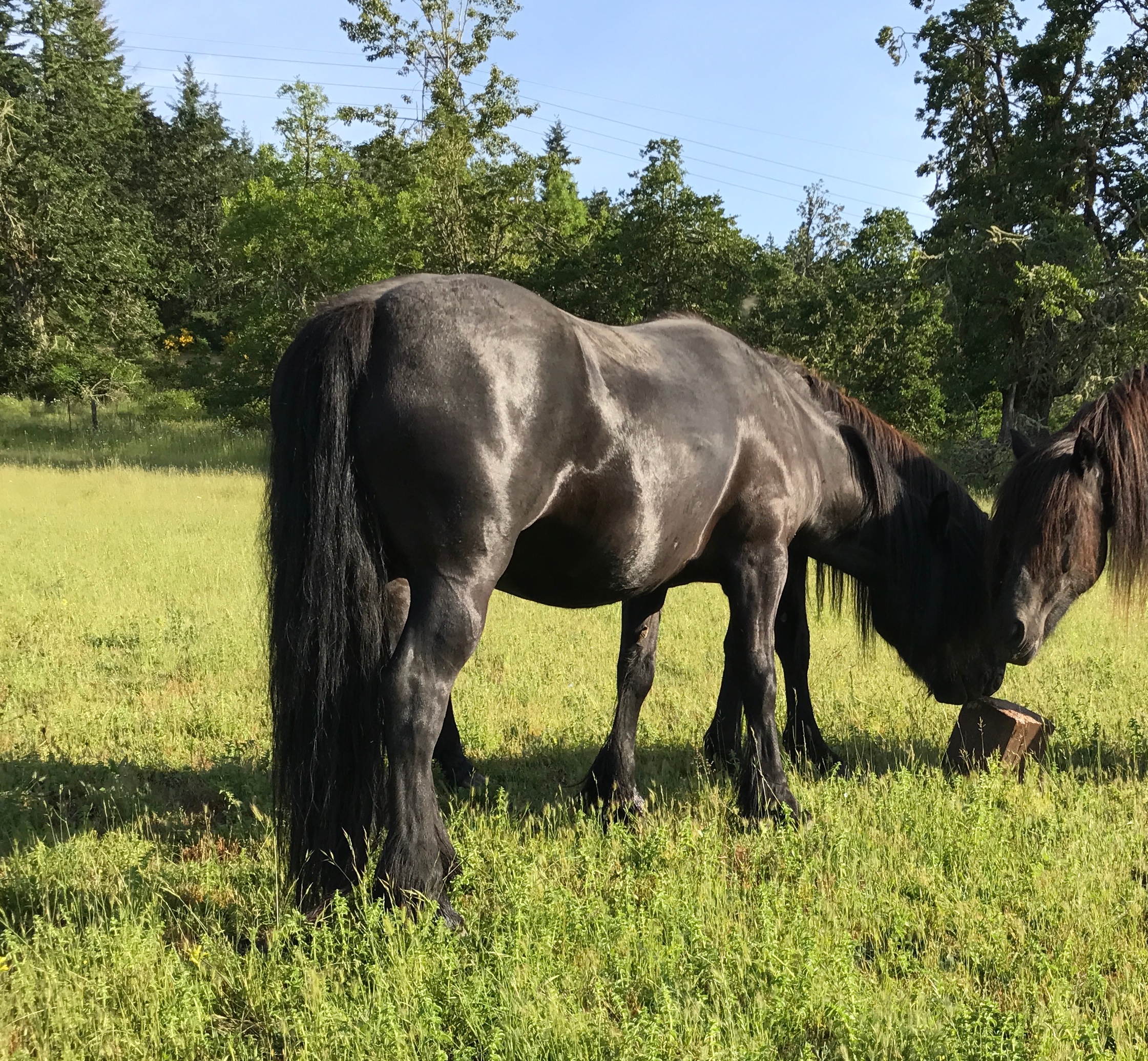 We find Crystal to be ideal in Fell pony type and movement. She has a nice balance of substance and refinement. Her temperament is very quiet, never causes trouble in the herd, and a friend to all.